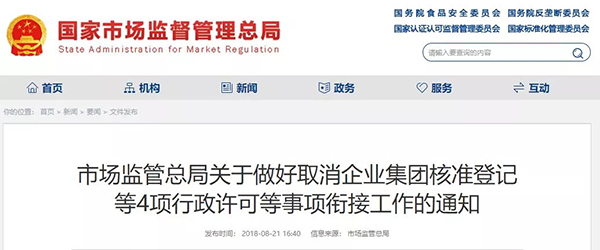 各地工商和市场监管部门要按照《决定》要求,不再单独登记企业集团,不再核发《企业集团登记证》,并认真做好以下衔接工作。